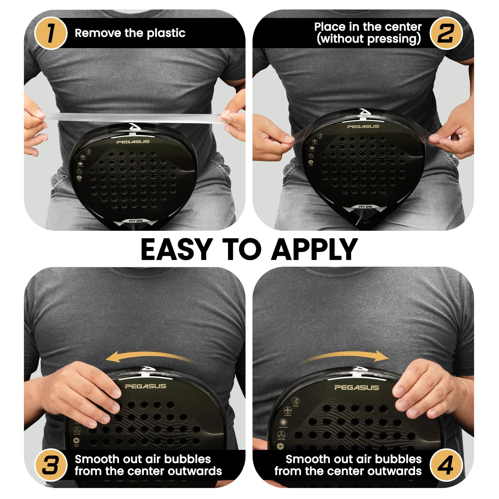 EASY APPLICATION – Flexible, adhesive design for effortless application, preserving the racket’s surface and paint.